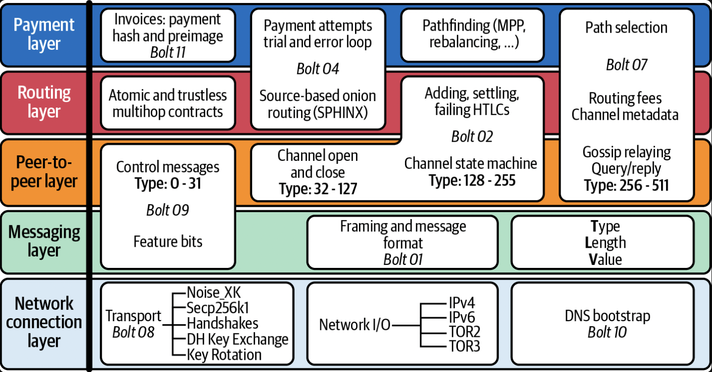 闪电网络**做了理论设计,BOLT是闪电网络的协议栈。是我们今天所知的、实际上的闪电网络的基础。