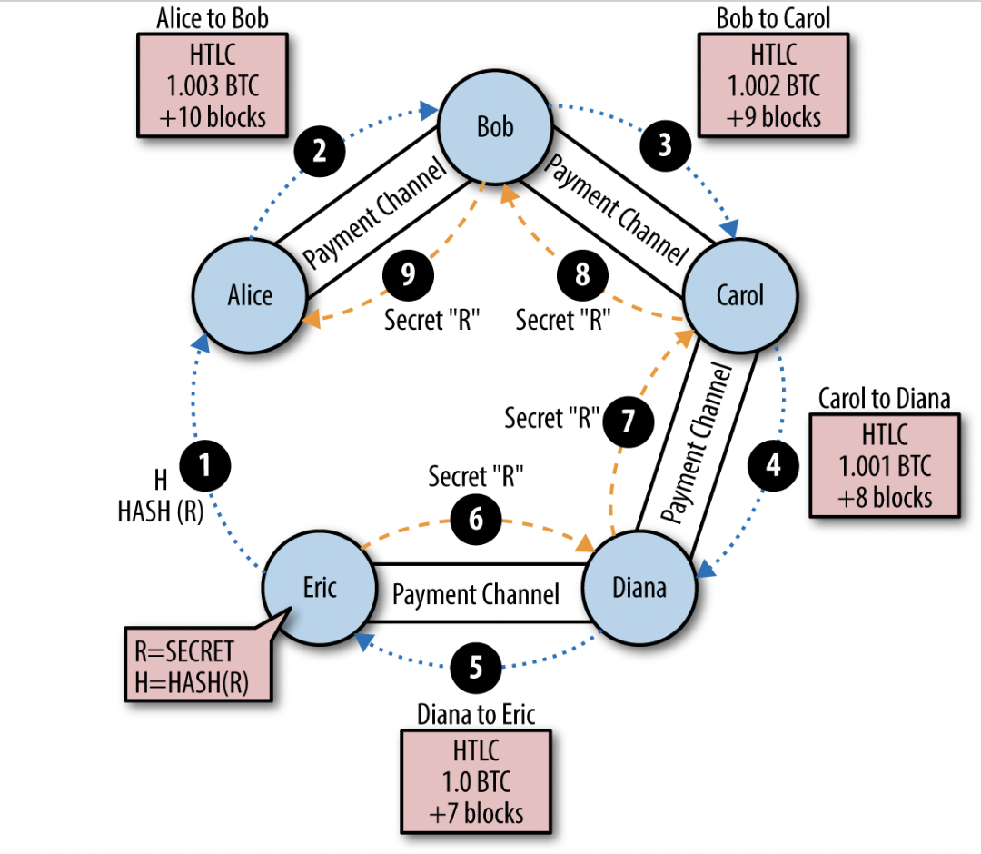 当然,进行原子交换的双方不需要拥有一个直接的支付通道,只要存在连接双方的通道路由就可以,当然,如果路由长了,就会有路由费用问题,也会有交易时延问题。