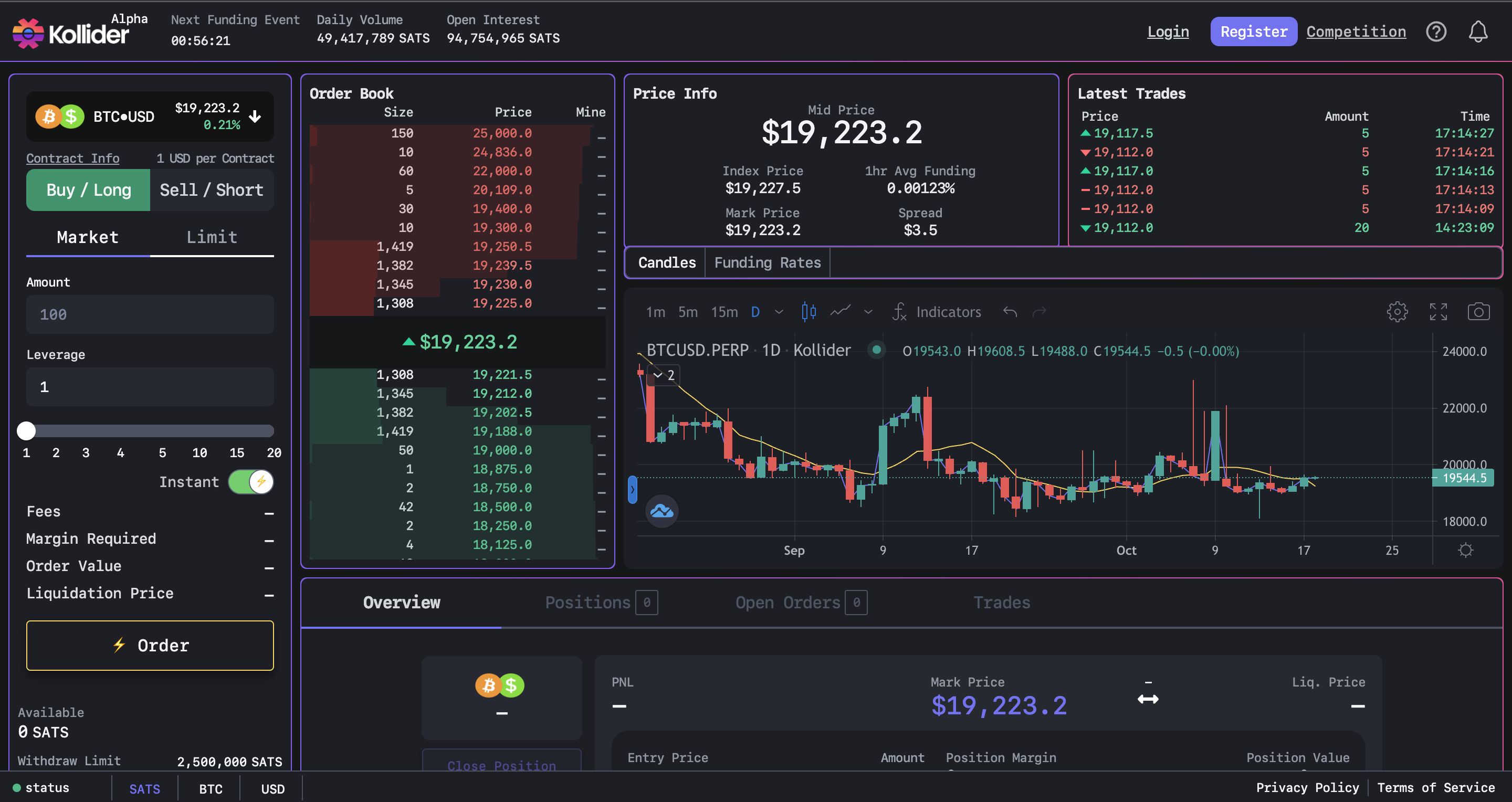 基于闪电网络的衍生品交易平台Kollider, 10月22日日交易量约1.1BTC。