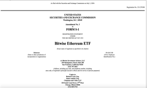 Bitwis修改S-1注册,计划推出以太坊现货TF