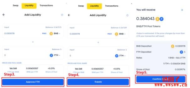 如果向BSC提及FTM币,即BIAN智能链条上的去**化交易所biswap也可以参与流动性挖掘,其收益会高于BIAN交易所。目前挖矿收入30%左右,交易费收入4%左右。那么我们如何赚取这些利润呢?