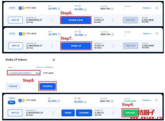 第六步。回到刚才的farm接口点Enable Farm,允许协议使用获得的LP。