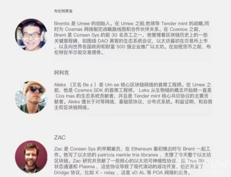 Umee团队成员来自ConsenSys(ConsenSys由以太坊联合创始人Joseph Lubin创办)与Co**os (阿童木ATOM生态)的开发核心人员。