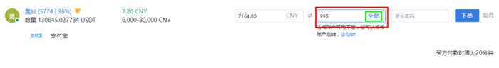 PS:这里需要注意下 限额,即本次出售,**到**所值得人民币,超过或者低于是无法卖给广告方的,根据自己有多少USDT来计算下。