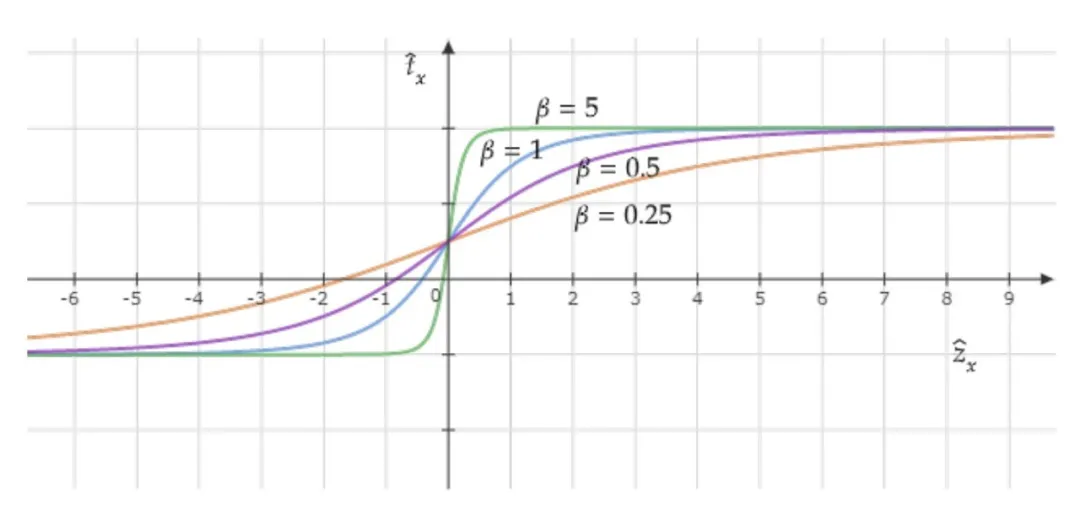 Coordinate activation function plot with different β values