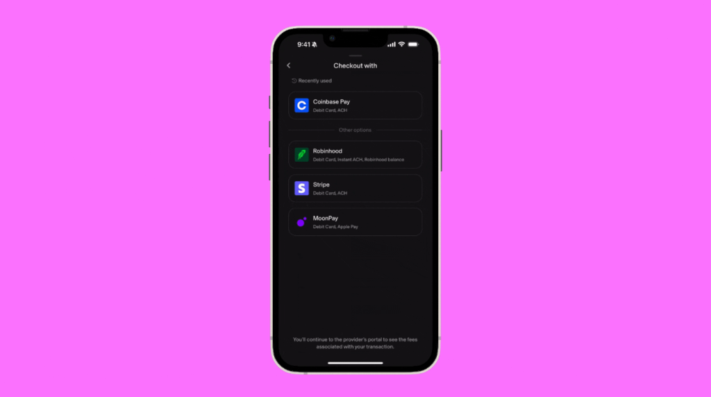 目前,Robinhood Connect已在Uniswap App上对**美国地区的用户开放,成为Uniswap上购买加密货币的第四个支付服务提供商,其他包括Coinbase Pay、Stripe、Moonpay。