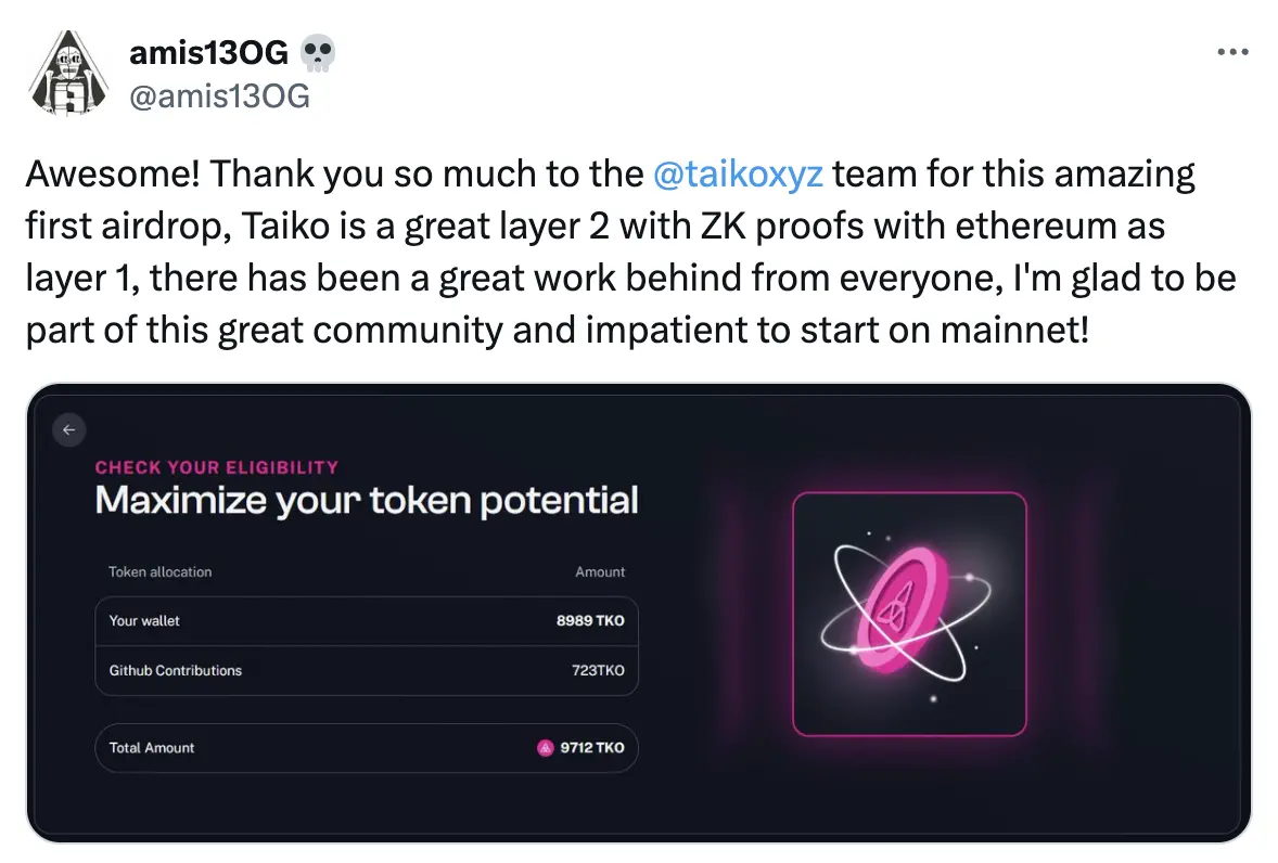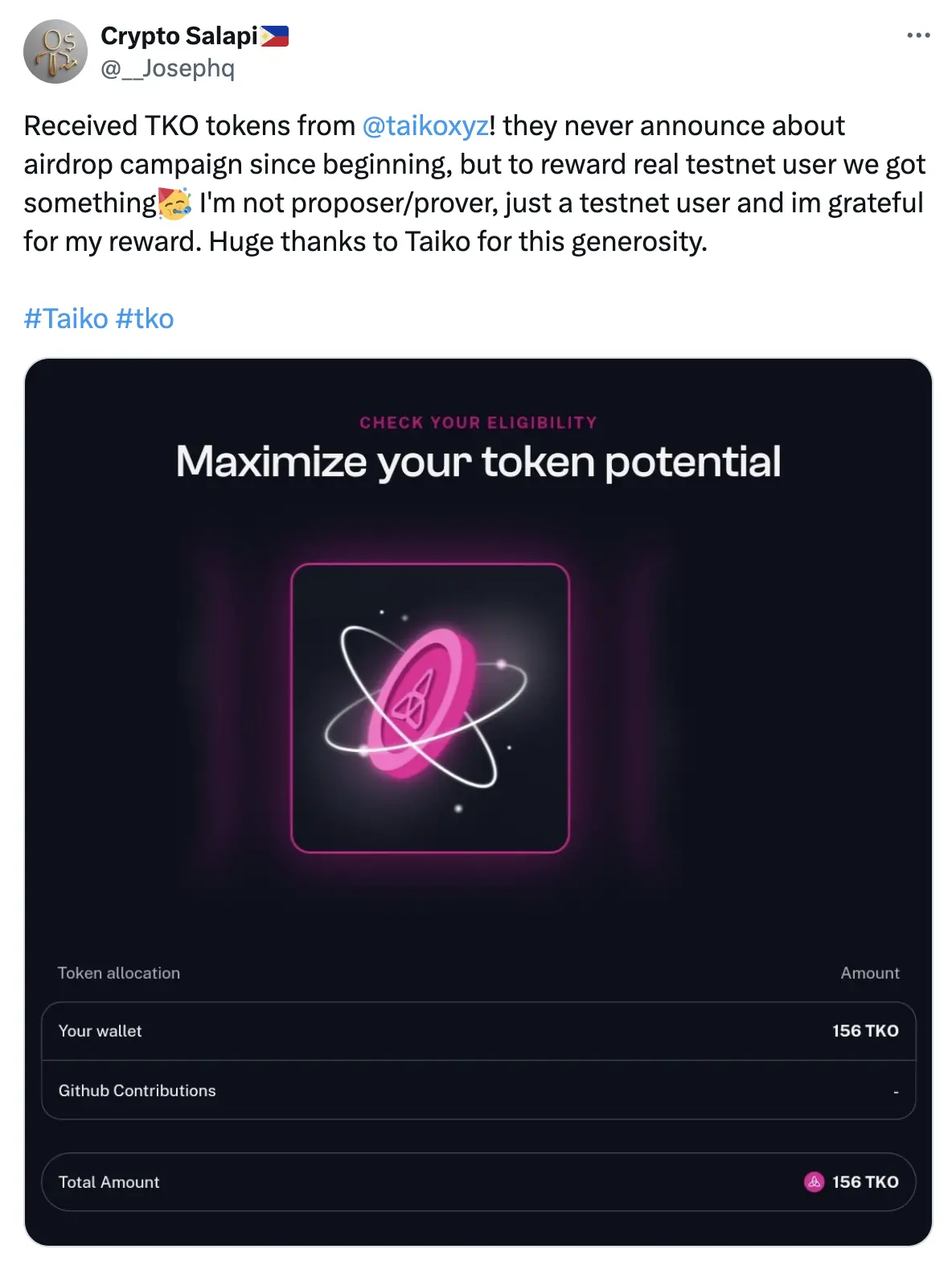 Taiko 回应质疑:超 30 万个地址可合计认领超 5000 万枚代币