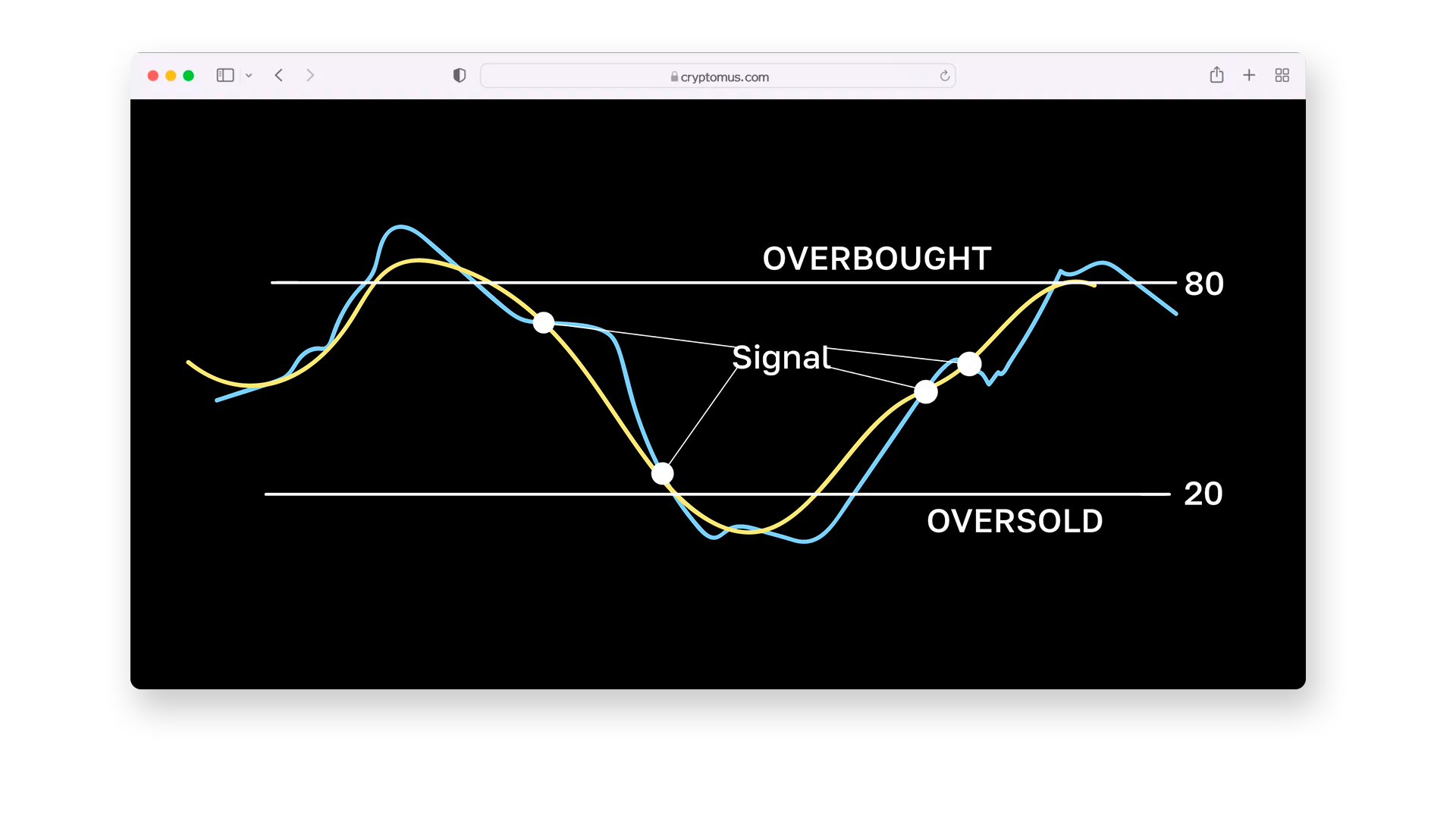 随机振荡器也用来判断超买或超卖状态。值高于80表示超买,低于20表示超卖。它由%K线和%D线组成,两线的交叉也可能产生交易信号。