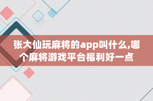 张大仙玩麻将的app叫什么,哪个麻将游戏平台福利好一点