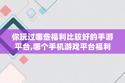 你玩过哪些福利比较好的手游平台,哪个手机游戏平台福利多一点