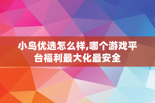 小鸟优选怎么样,哪个游戏平台福利最大化最安全