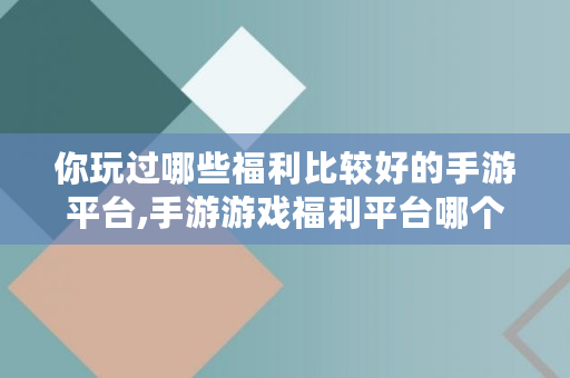 你玩过哪些福利比较好的手游平台,手游游戏福利平台哪个好用