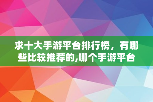 求十大手游平台排行榜,有哪些比较推荐的,哪个手游平台游戏福利好一点