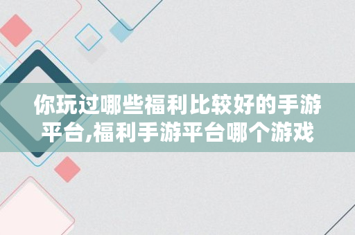 你玩过哪些福利比较好的手游平台,福利手游平台哪个游戏全福利多啊