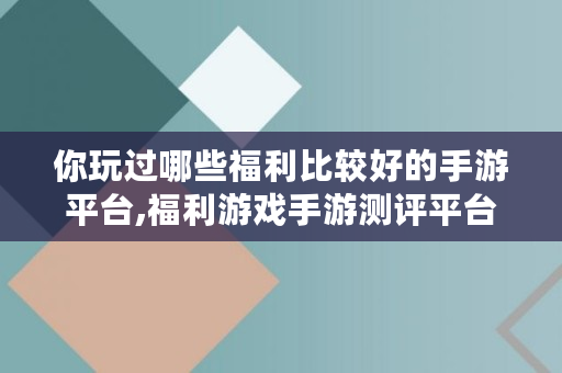 你玩过哪些福利比较好的手游平台,福利游戏手游测评平台哪个好用