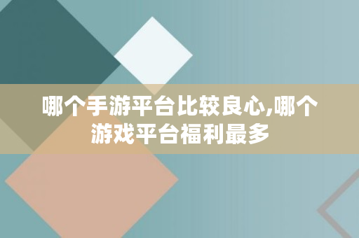 哪个手游平台比较良心,哪个游戏平台福利最多