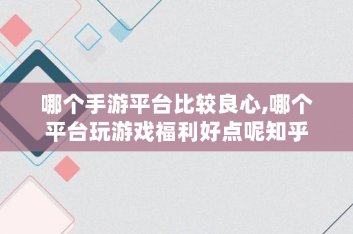 哪个手游平台比较良心,哪个平台玩游戏福利好点呢知乎