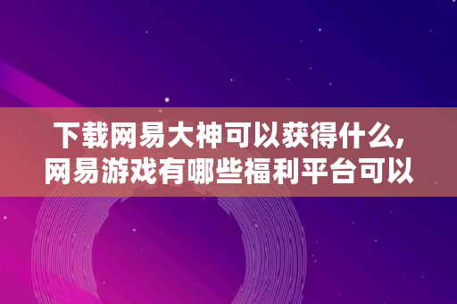下载网易大神可以获得什么,网易游戏有哪些福利平台可以玩