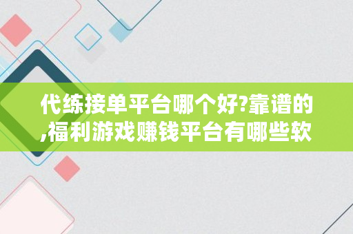 代练接单平台哪个好?靠谱的,福利游戏赚钱平台有哪些软件