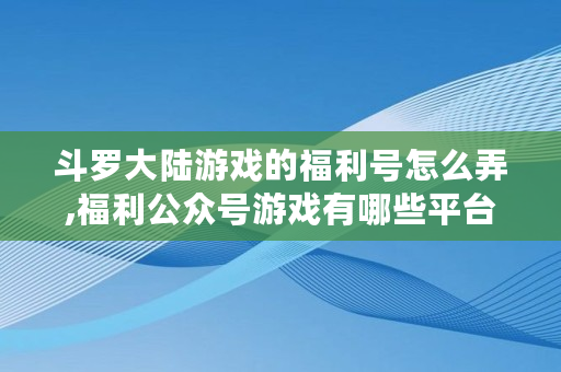 斗罗大陆游戏的福利号怎么弄,福利公众号游戏有哪些平台可以玩
