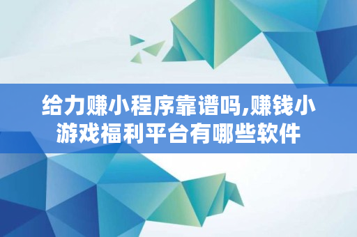 给力赚小程序靠谱吗,赚钱小游戏福利平台有哪些软件