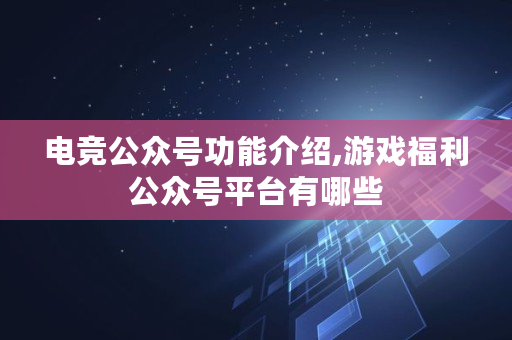 电竞公众号功能介绍,游戏福利公众号平台有哪些