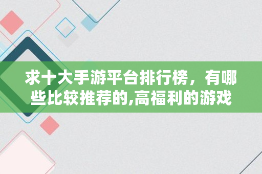 求十大手游平台排行榜,有哪些比较推荐的,高福利的游戏平台有哪些软件
