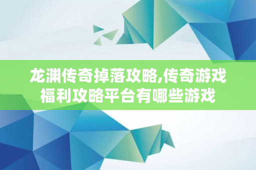 龙渊传奇掉落攻略,传奇游戏福利攻略平台有哪些游戏