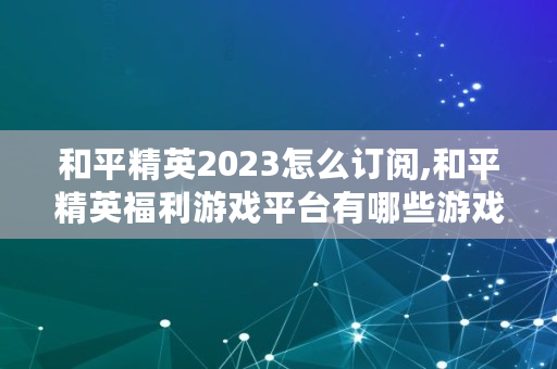 和平精英2023怎么订阅,和平精英福利游戏平台有哪些游戏