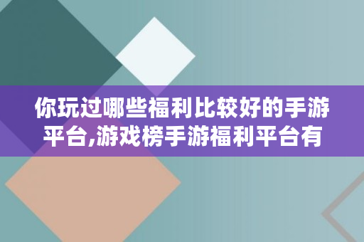 你玩过哪些福利比较好的手游平台,游戏榜手游福利平台有哪些
