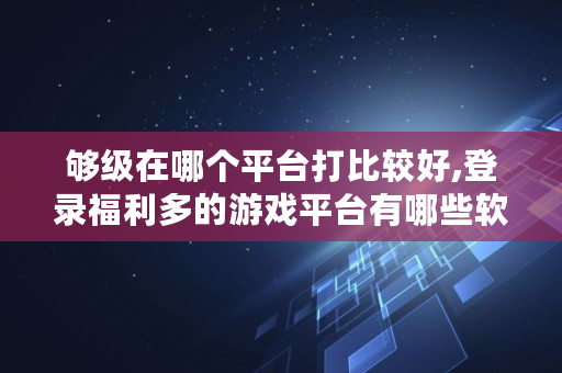 够级在哪个平台打比较好,登录福利多的游戏平台有哪些软件