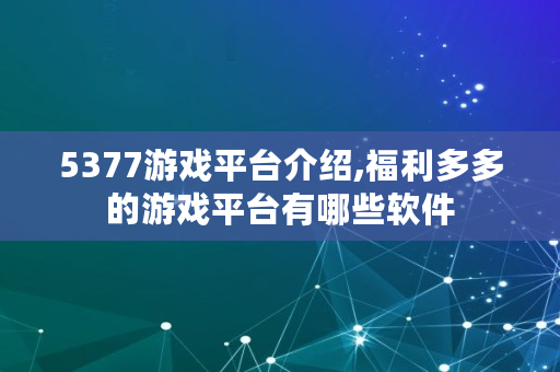 5377游戏平台介绍,福利多多的游戏平台有哪些软件