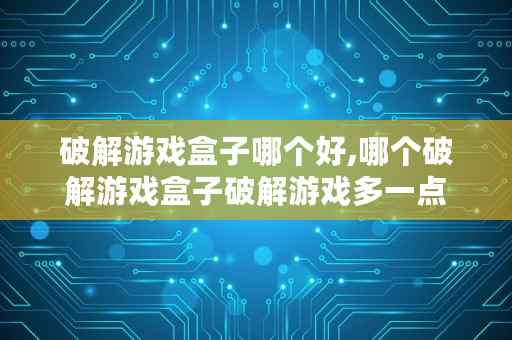 以上内容就是关于哪个破解游戏盒子破解游戏多的问题**解答了,如果对你有所帮助的话,请收藏关注本站,这里将更新更多关于哪个破解游戏盒子破解游戏多的内容。