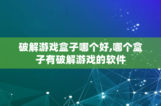 以上内容就是关于哪个盒子有破解游戏的问题**解答了,如果对你有所帮助的话,请收藏关注本站,这里将更新更多关于哪个盒子有破解游戏的内容。