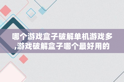 哪个游戏盒子破解单机游戏多,游戏破解盒子哪个最好用的