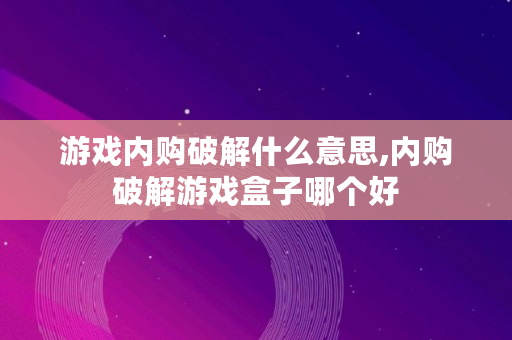 游戏内购破解什么意思,内购破解游戏盒子哪个好