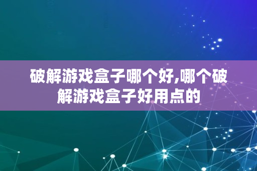 以上内容就是关于哪个破解游戏盒子好用点的问题**解答了,如果对你有所帮助的话,请收藏关注本站,这里将更新更多关于哪个破解游戏盒子好用点的内容。