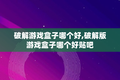 以上内容就是关于破解游戏盒子哪个好贴吧的问题**解答了,如果对你有所帮助的话,请收藏关注本站,这里将更新更多关于破解游戏盒子哪个好贴吧的内容。