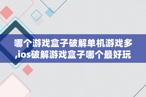 哪个游戏盒子破解单机游戏多,ios破解游戏盒子哪个最好玩的