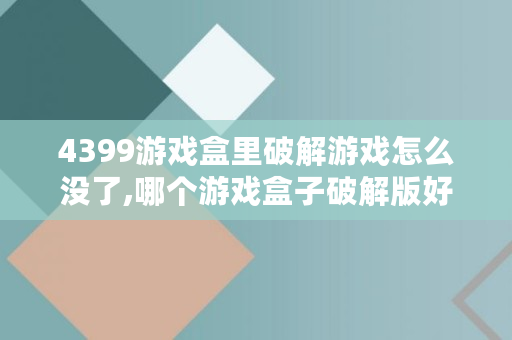 4399游戏盒里破解游戏怎么没了,哪个游戏盒子破解版好用一点