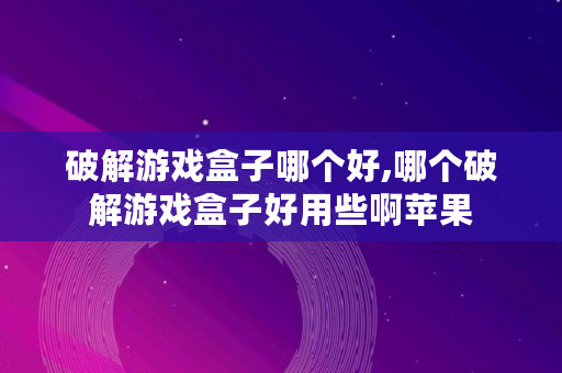 破解游戏盒子哪个好,哪个破解游戏盒子好用些啊苹果