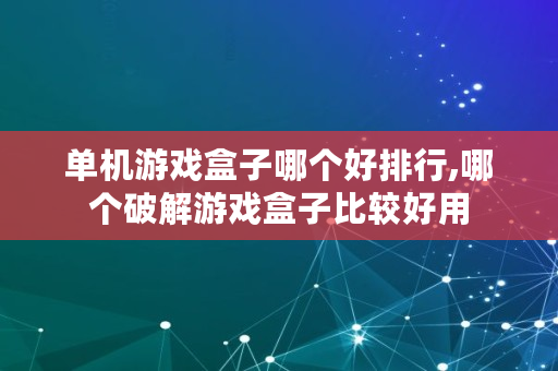 单机游戏盒子哪个好排行,哪个破解游戏盒子比较好用