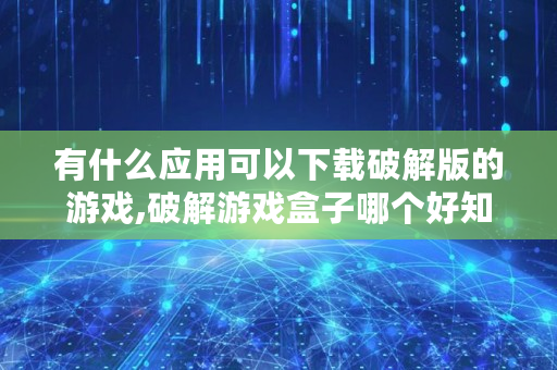 有什么应用可以下载破解版的游戏,破解游戏盒子哪个好知乎推荐