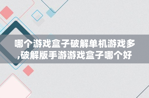 哪个游戏盒子破解单机游戏多,破解版手游游戏盒子哪个好贴吧