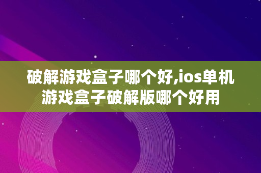 以上内容就是关于ios单机游戏盒子破解版哪个好的问题**解答了,如果对你有所帮助的话,请收藏关注本站,这里将更新更多关于ios单机游戏盒子破解版哪个好的内容。