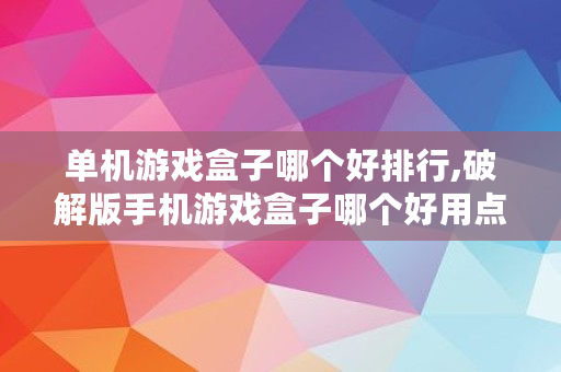 单机游戏盒子哪个好排行,破解版手机游戏盒子哪个好用点的