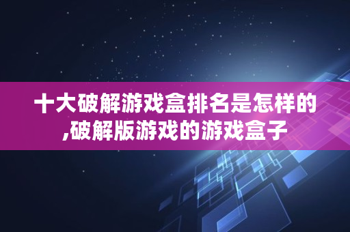 以上内容就是关于下载破解游戏盒子有哪些的问题**解答了,如果对你有所帮助的话,请收藏关注本站,这里将更新更多关于下载破解游戏盒子有哪些的内容。