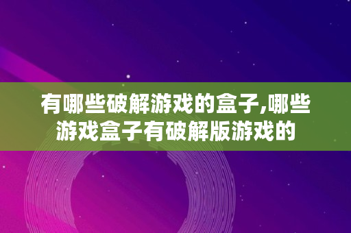 有哪些破解游戏的盒子,哪些游戏盒子有破解版游戏的