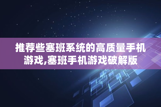 推荐些塞班系统的高质量手机游戏,塞班手机游戏破解版