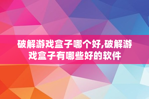 破解游戏盒子哪个好,破解游戏盒子有哪些好的软件
